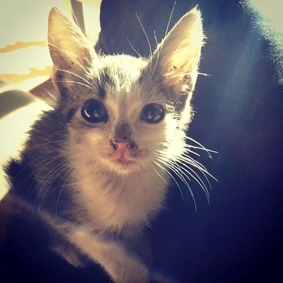 "Poză cu pisica... mea. De azi. Prieteni noi", este mesajul care însoţeşte imaginea postată de Smiley pe o reţea de socializare.