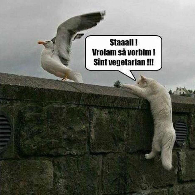 Cântăreaţa a opstat pe reţeauau de socializare o imagine în care apare mesajul "Stai! Vroiam să vorbim. Sînt vegetarian!". Varianta corectă este "Stai. Voiam ( sau vream) să vorbim. Sunt vegetarian"