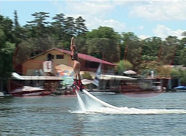Ca de obicei, curajoasa Ana Mocanu a fost prima care s-a aventurat să încerce senzațiile pe care le oferă flyboardul. Așa că, fără să stea prea mult pe gânduri, asistenta lui Dan Capatos s-a aruncat în apa Snagovului și, după câteva încercări nereușite și zbieretele de rigoare, Ana s-a simțit, la un moment dat, ca și când ar zbura, plăcerea ei fiind una fără margini, în ciuda efortului depus.
