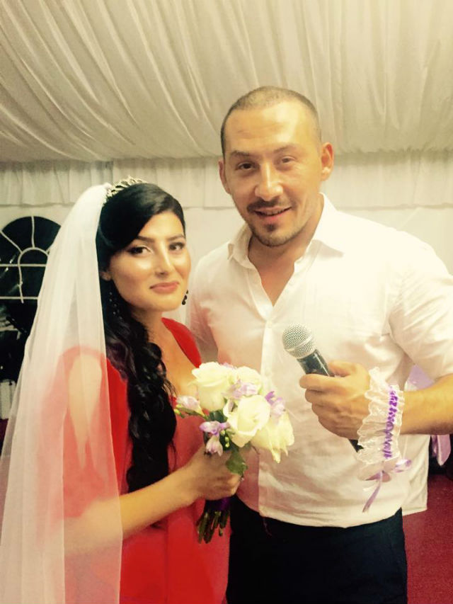 Îmbrăcaţi la patru ace amândoi, cântăreţul a făcut un anunţ neaşteptat. "Am prins jarteaua şi m-am şi însurat", a scris el în dreptul imaginii postate pe Facebook.
