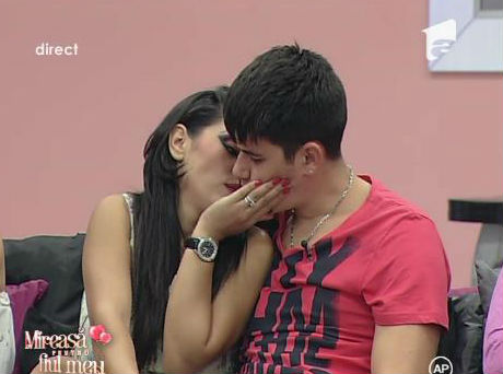 În timp ce Mirela Vaida dezbătea câteva probleme întâlnite de Andrei şi Cristina, Constantina l-a apucat extrem de senzual pe Raymond de maxilar, l-a privit printre gene şi i-a oferit o sărutare romantică.