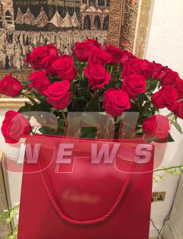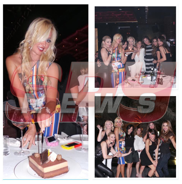 Pe lângă petrecerea surpriză pusă la cale de soţul ei, blonda a fost pur şi simplu cucerită de cadoul pe care acesta i l-a dăruit. Înarmat cu un coş imens de trandafiri roşii, Walter i-a pus pe mână o bijuterie de lux, din aur şi diamante, achiziţionată de la o renumită firmă.