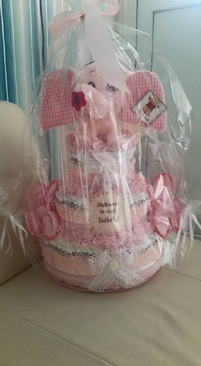 "Mulţumim pentru cadou, dar nu ştim de la cine l-am primit", au scris cei doi pe facebook. Sub plastic, se află un tort roz cu un elefănţel pe el. "Mult noroc în viaţă, Isabela", scrie pe cadoul primit.