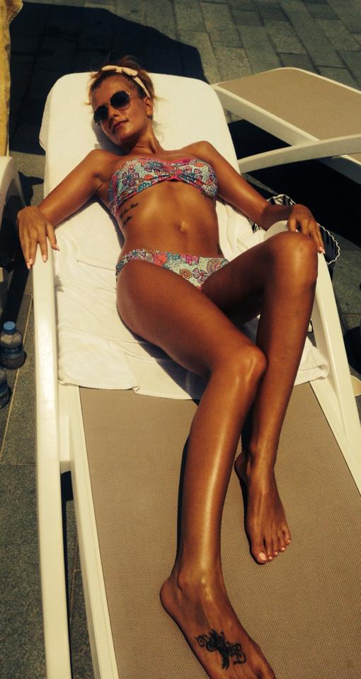 Sylvia Sârbu a postat pe contul personal de socializare o serie de fotografii de la piscină. Într-un costum de baie minuscul, cu ochelari de soare la ochi, Sylvia stă relaxată pe şezlong şi se bucură de soare.