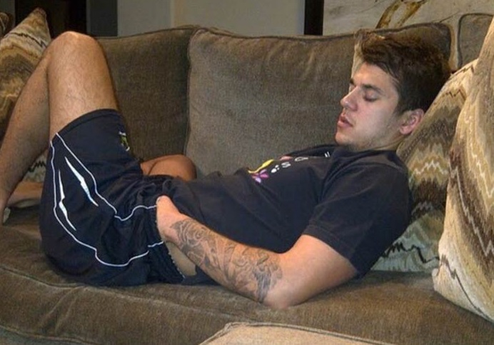 Una dintre fotografiile postate recent este făcută acum patru ani, pe vremea în care Rob locuia împreună cu Khloe şi Lamar. Acesta este surprins pe o canapea, dormind într-o poziţie crăcănată cu mâna în pantaloni!