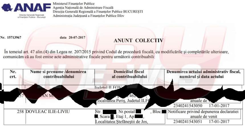 Individul care n-a catadicsit să aprindă o lumânare la căpătâiul Denisei, deşi a mâncat ani la rând de pe urma ei, este căutat, în prezent, de angajaţii ANAF, fiind acuzat că a fentat statul şi nu a declarat veniturile încasate anul trecut. Numele lui Dovleac apare pe o “listă neagră” realizată recent de ANAF, iar dacă nu va da curs somaţiei, cel ai probabil impresarul se va alege cu toate conturile blocate.