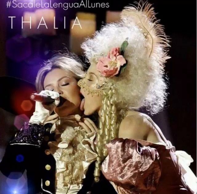 Thalia a postat pe reţeaua de socializare Instagram o imagine în care apare cu o dansatoare în timp ce o linge pe faţă.