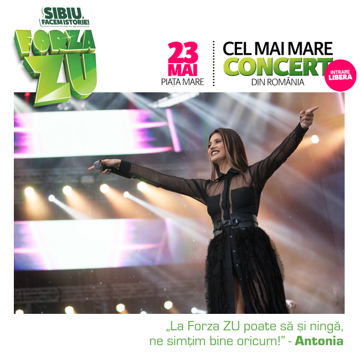 "Sibiu, sunt aici! Astazi este FORZA ZU! Ne vedem in Piata Mare!", a scris Antonia pe reţeaua de socializare.