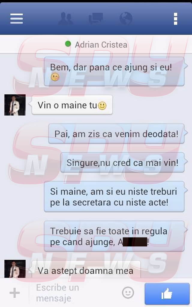 Incitat la maximum de dezinvoltura româncei din Madrid, Adrian Cristea nu s-a putut abține să nu fugă până în Spania pentru a o întâlni și pentru a-și satisface apetitul printr-o orgie din care nu ar fi lipsit sexul în grup și perversiunile aferente, toate discutate într-o serie de mesaje care, fără putință de tăgadă, ar putea fi scheletul scenariului unui film pentru adulți.