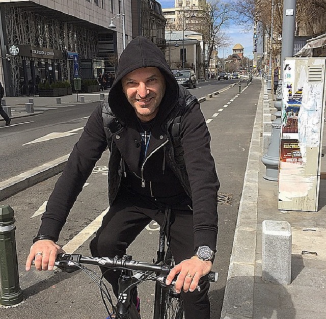 Joi, la orele prânzului, moderatorul "păcătos" a profitat de soarele de afară şi a ieşit la o plimbare cu bicicleta, pe străzile din Bucureşti. Asemenea "mondenilor" de altădată, el a pedalat pe Calea Victoriei şi a surprins întregul moment printr-o fotografie.