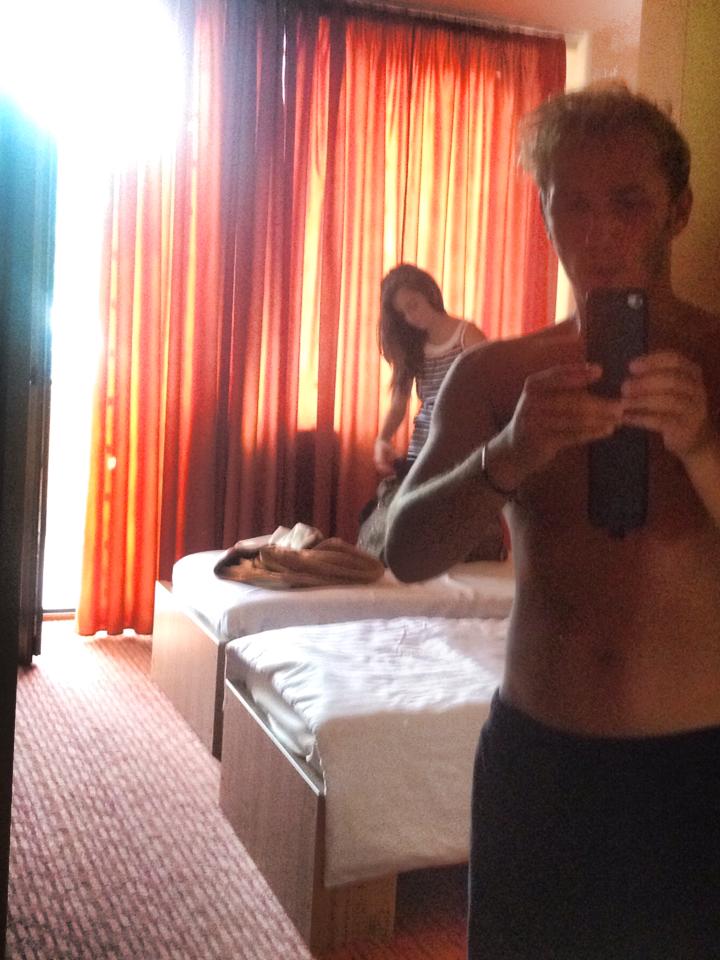 Mihai Trăistariu şi-a amuzat copios prietenii virtuali, după ce a postat pe o reţea de socializare o fotografie în care apare într-o cameră de hotel, pe jumătate dezbăcat. Admiratorii acestuia au fost atât de oripilaţi de boxerii acestuia încât nici nu au remarcat-o pe domnişoara misterioasă din spatele artistului, care împacheta de zor la bagaje.