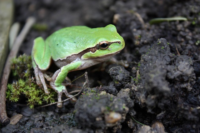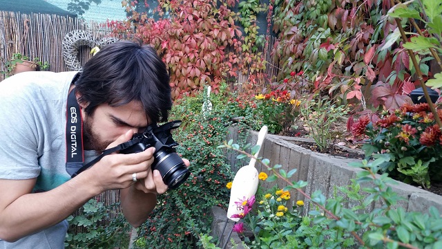 De curând, acesta a postat pe o reţea de socializare mai multe fotografii în care se străduieşte să prindă câteva cadre cu o broscuţă ce a dat buzna în grădina "Zânei".
