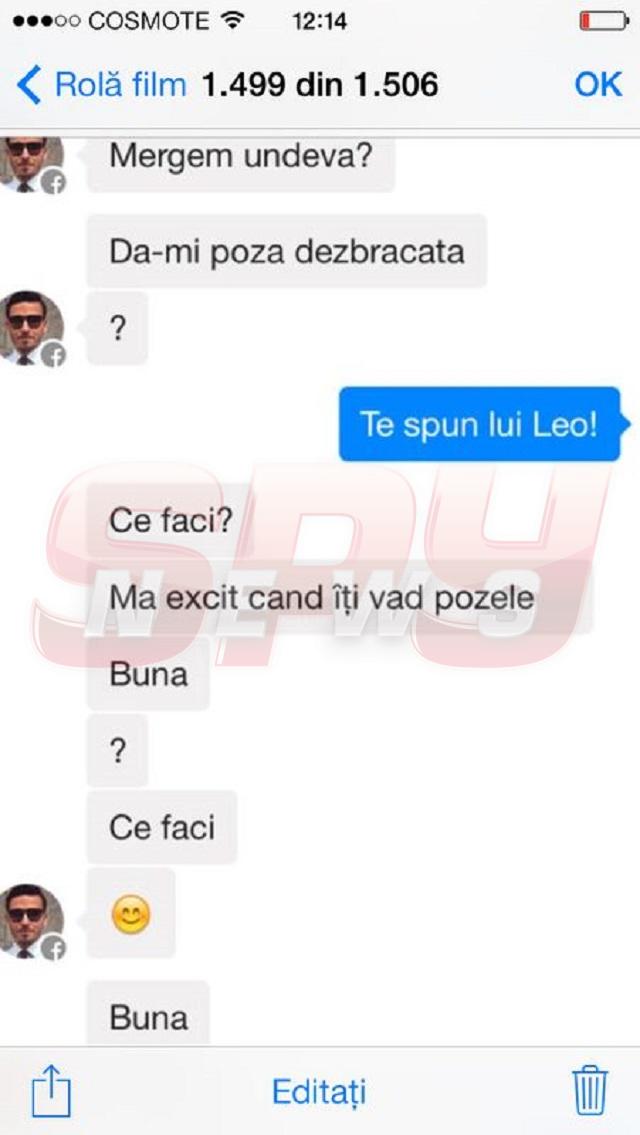 Mai exact, fără să o menajeze pe brunetă, i-a cerut să îi trimită câteva fotografii cu ea... dezbrăcată. Motivul? „Mă excit când îţi văd pozele”, i-a transmis fotbalistul Renatei. Evident, ne-a dezvăluit Renata, cererea mijlocaşului a fost ignorată, aşa că „Prinţul” a devenit şi mai insistent, mesajele înmulţindu-se ca ciupercile după ploaie. „Tu te potriveşti cu mine”, i-a spus Cristea Renatei, iar apoi a început să îi jignească iubitul, pe Leo de la Strehaia: „Am văzut că te-ai despărţit de ţiganul tău (...) Poate pleacă în ţigănia lui”.