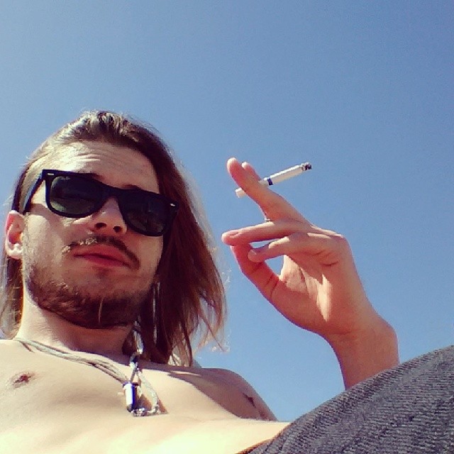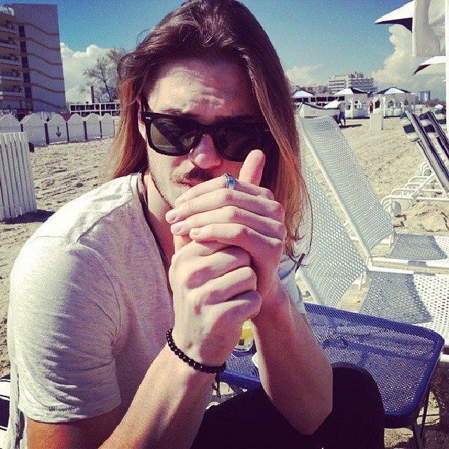 Într-una dintre pozele publicate pe contul de socializare, Alex apare la bustul gol, tolănit pe plajă, afişând o atitudine nonşalantă. "Alex, eşti perfect!", i-au scris admiratoarele. În cea de-a doua fotografie, u alura sa de star rock, cu părul răvăşit, cu barbă şi ochelari de soare, Finalistul X Factor s-a aşezat pe un şezlong şi s-a lăsat pozat chiar în momentul în care şi-a aprins o ţigară.