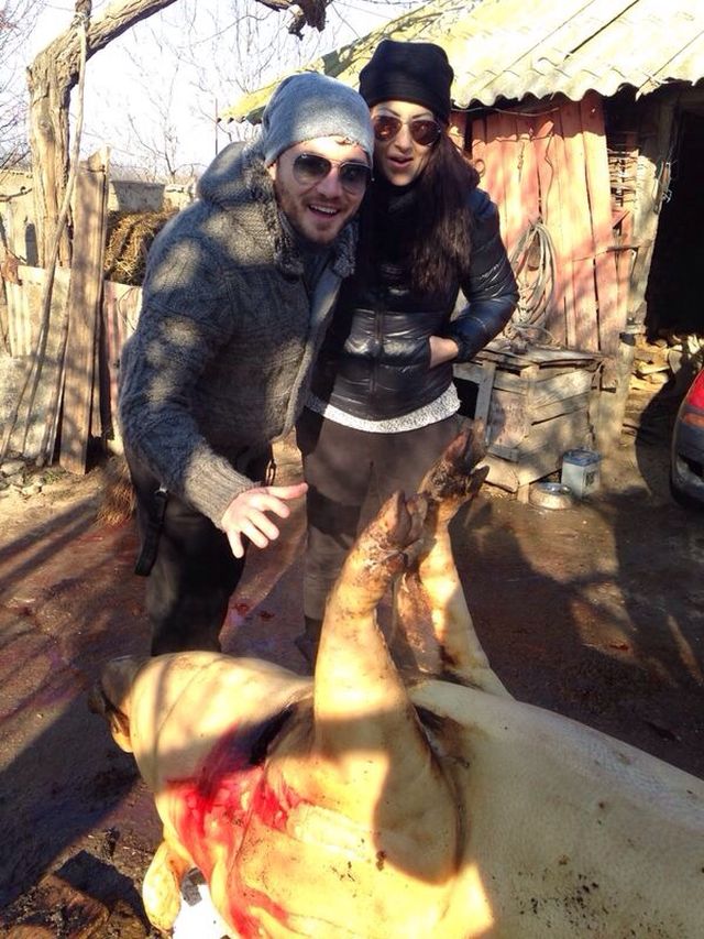 Gabriela a uitat până şi de make-up, că de nu se încadra în cadrul rustic, iar acest lucru nu i-a împiedicat pe cei doi să se distreze copios. Pe seama cui, numai ei ştiu!