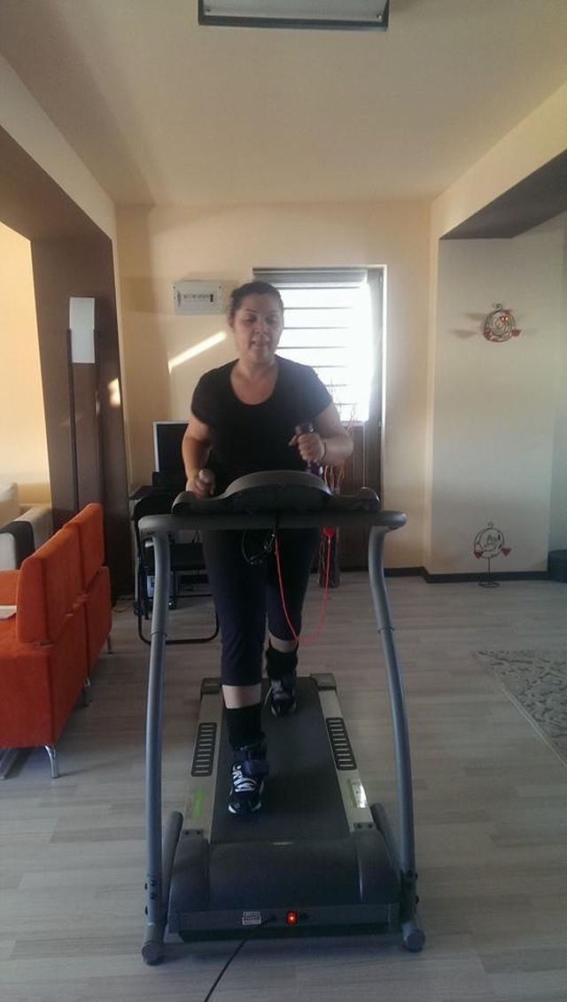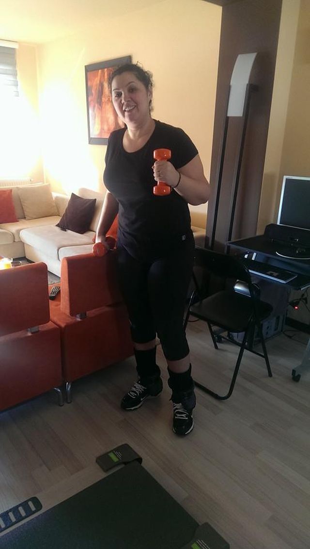 Vedeta se antrenează şi acasă, ea alergând minute bune pe bandă. Pentru a-şi lucra braţele, cântăreaţa şi-a luat şi gantere, demonstrând încă o dată cât de hotărâtă este să redevină la greutatea ideală, la care se simte cel mai bine.