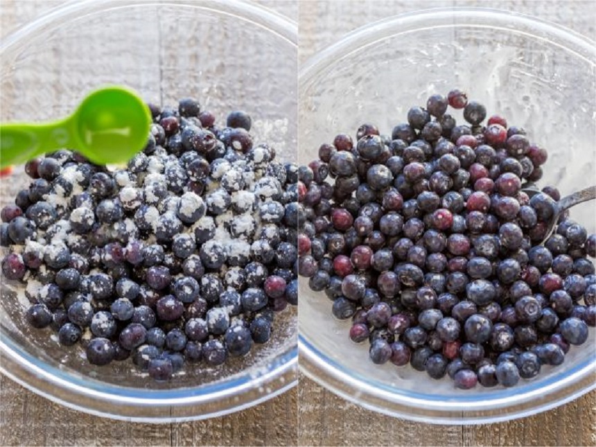 4. Spălați bine afinele, după care le amestecați cu amidonul de porumb și o linguriță de suc de lămâie.