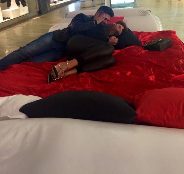 Bianca Drăguşanu a postat pe o reţea de socializare o fotografie în care apare în pat aşezat într-un centru comercial, alături de un tânăr brunet.