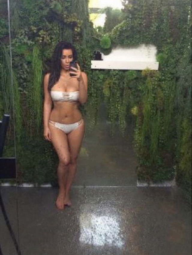 Extravaganta vedetă, în vârstă de 34 de ani, şi-a pus pe contul ei de Instagram un selfie foarte sexy ieri, când toţi oamenii au sărtbătorit Ziua Pământului. În fotografie, Kim poartă un costum de baie extrem de mulat, care-i scoate în evidenţă formele voluptoase, iar în spate are verdeaţă luxuriantă.