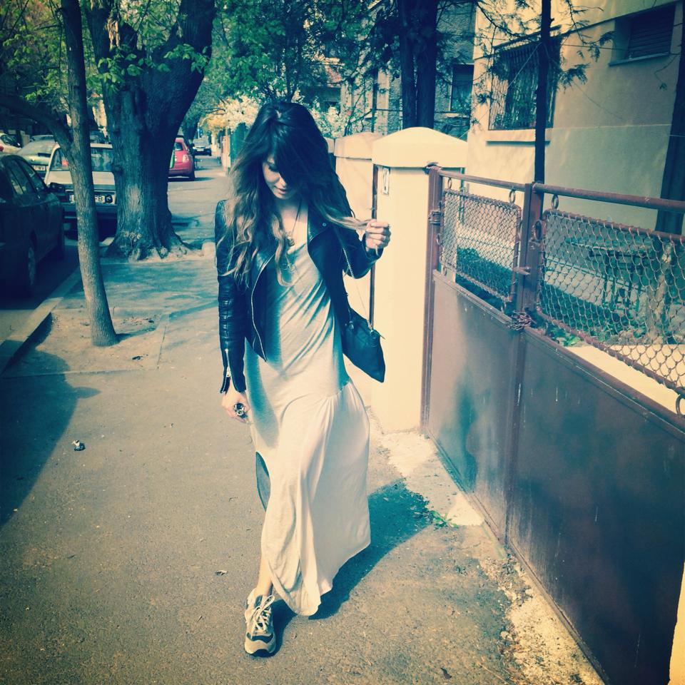 Cântăeaţa şi-a pus peste rochia vaporoasă o geacă neagă de piele ş a completat întreaga ţinută cu.. o pereche de încălţări sport, de alergat. În timp ce unii s-au mirat de alegerea vestimentară a vedetei, alţii au lăudat-o. "Ador stilul tău", i-au scris câţiva fani, pe Facebook.