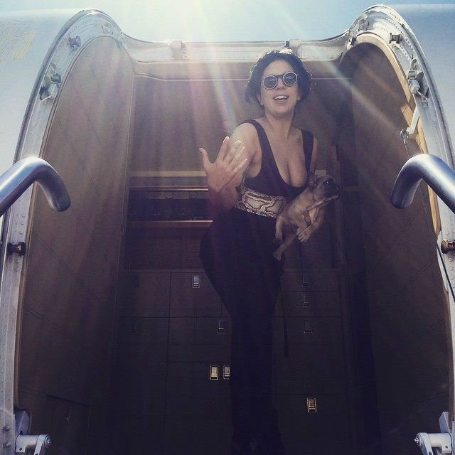 Lady Gaga a postat o fotografie cu ea şi Koji după ce a păşit în avion, însă, în peisaj nu apare şi sticla de vin.