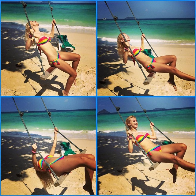 În timp ce românii se confruntă cu frigul, Andreea Bălan se distrează pe meleaguri exotice. Într-un costum de baie multicolor, artista şi-a satisfăcut copilul din ea. Încă de la primele ore ale dimineţii, frumoasa artistă s-a dat în leagăn.