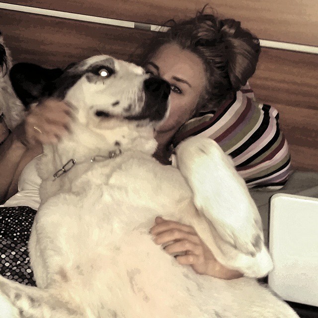 Frumoasa blondă a postat pe o reţea de socializare o fotografie în care apare în pat, "cotropită" de cel mai bun şi mai fidel prieten al ei, căţelul Zoro.