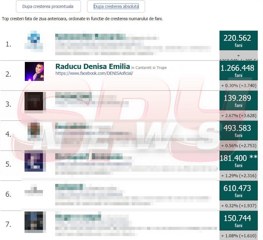De când a fost făcut publică situaţia gravă în care se află artista, oamenii au luat cu asalt pagina sa de Facebook, pentru a fi la curent cu starea de sănătate. În ultima perioadă, pagina oficială a artistei a "explodat", ocupând, conform statisticilor, locul doi la capitolul "Creşteri absolute", pe primul loc fiind o companie gigant din Statele Unite ale Americii. Iar faptul că Denisa a ajuns să aibă peste 1,2 milioane de fani în spaţiul virtual demonstrează că este una dintre cele mai îndrăgite cântăreţe, iar publicul este alături de ea în aceste momete grele.
