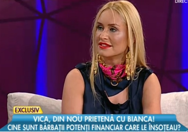 Întrebată dacă s-a împăcat sau nu cu Bianca Drăguşanu, Vica a ţinut să precizeze că mereu au fost foarte bune amice, chiar dacă nu a participat la nunta roşcatei. "La Bianca totul se întâmplă aşa de repede în viaţă, că nici eu nu mai ştiu. Suntem prietene, mă susţine, vine cu mine la <<Splash!>>", a glumit Vica Blochina.