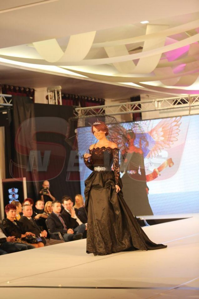 Nici Anca Ţurcaşiu nu a fost mai prejos. Cântăreaţa a jucat şi ea rolul de mireasă a colecţiei, într-o rochie neagră, de prinţesă. Accesoriile pe care artista le-a purtat au accentuat aerul de epocă al ţinutei. Umbrela din dantelă, cureaua cu pietricele şi diadema au contribuit la conturarea unei apariţii originale.