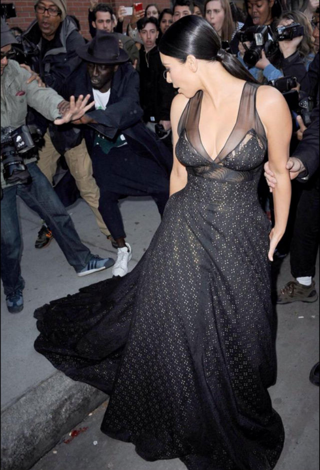 În clipa în care părinţii lui North au ieşit din apartamentul lor din New York, ei au fost copleşiţi de numărul mare de fani, dar şi de fotografi. În timp ce încerca să intre în maşină, un fotograf a călcat pe rochia lungă şi extrem de elegantă a lui Kim Kardashian. Momentul a fost fotografiat şi a făcut înconjurul lumii.