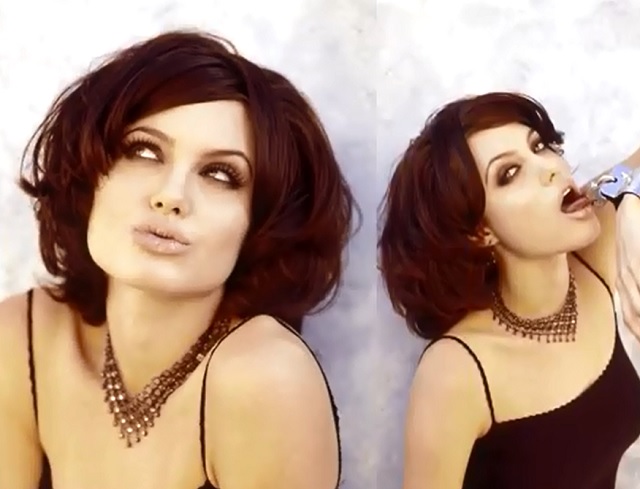 Angelina Jolie este o adevărată doamnă la vârsta de 39 de ani, dar în tinereţe a fost mai nebunatică. În imaginile de mai jos, Angelina Jolie apare cu părul scurt, fără sutien şi cu două tatuaje pe spate în imagini compromiţătoare.