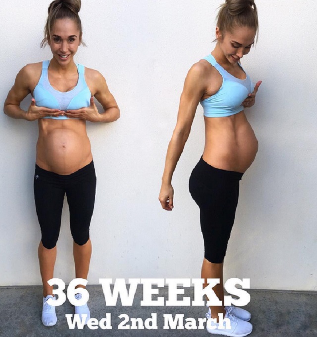 Duncan a împărtăşit cu prietenii virtuali imagini de pe toată perioada sarcinii, arătându-le că burtica ei creşte, reuşind însă să-şi păstreze pătrăţele de pe abdomen.