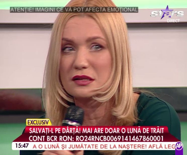 Impresionată de drama prin care trece Marian Dârță, Crisitna Cioran a încput să plângă. ”Trăim într-o țară în care oamenii mor cu zile pentru că spitalele nu au aparatură. Există niște doctori senzaționali, dar nu au cu ce lucra. Nu e normal să își cumpere pacienții ce au nevoie, pansamente sau alte lucruri. nu se poate așa ceva!!! Să ai o tumoră care se poate opera și să nu se poată face! Este un drept fundamental al nostru care e încălcat! Nu îmi pot imagina așa ceva”, a spus, cu lacrimi în ochi, Cristina Cioran.