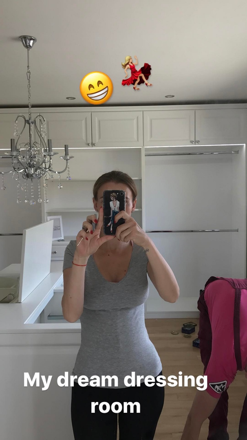 Astăzi, vedeta a postat pe una dintre reţelele de socializare mai multe imagini şi un clip în care este prin casă. În fotografie apar mai multe jucării pentru cei mici, dar şi cadouri pentru ea. Într-o altă imagine, vedeta s-a fotografiat în oglindă. Acolo în dressing aranjează hainele. Ce atrage atenţia este silueta sa care nu dă semne că ar născut curând. Poartă haine mulate care îi scot în prim plan trupul.
