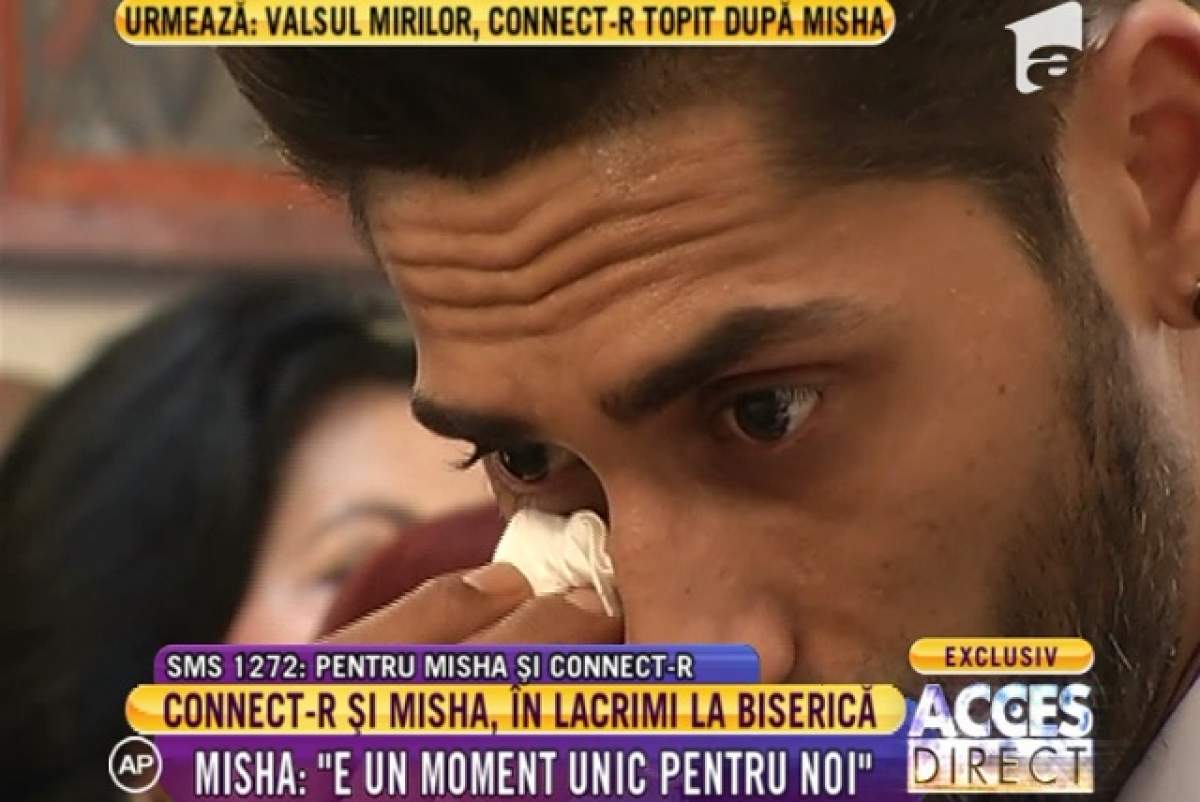 Connect-R este o persoană extrem de religioasă, iar cununia l-a făcut să lăcrimeze. "Sunt trăiri lăuntrice şi nu pot fi descrise în cuvinte", a declarat Connect-R la "Acces Direct". Şi Misha a fost copleşită de emoţii. "Am fost emoţionată, am lăcrimat", a adăugat blonda.