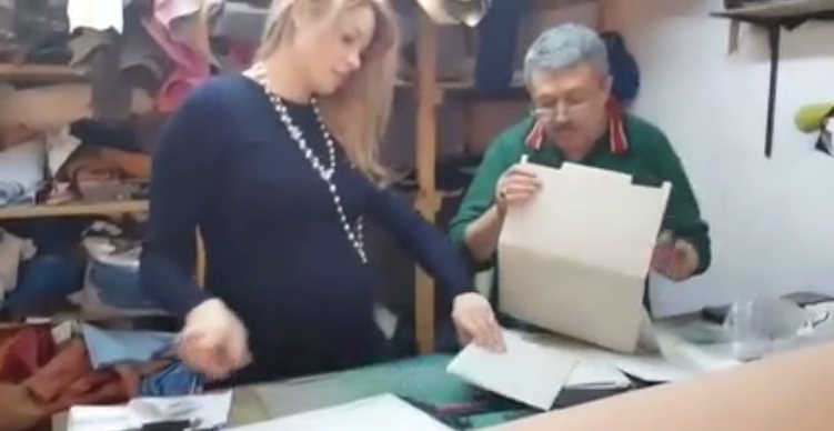 Valentina Pelinel a postat pe contul său de socializare, în urmă cu puţin timp, un filmuleţ în care apare alături de un croitor, într-un atelier pentru confecţionarea genţilor.