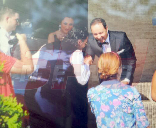 Acasă la naşi i-au aşteptat lăutarii. Pepe a respectat tradiţia şi a aruncat 100 de euro în găleata cu apă. Imediat după aceea, mirele i-a oferit un buchet de flori albe, roz şi mov naşei sale căreia i-a sărutat şi mâna. De aici, vor pleca la Raluca. În drum spre mireasă, în limuzină, Pepe şi naşii vor bea şampanie cu foiţă de aur.