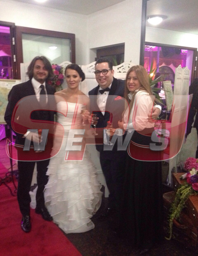 Răzvan Popescu a purtat un costum negru, cu cămaşă albă şi papion tot negru, la care a asortat o batistă roşie, în timp ce frumoasa sa mireasă, Angela, a ales o rochie fără bretele, mulată până în zona abdomenului şi cu multe volane în partea de jos. Cei doi "însurăţei" au fost aplaudaţi când şi-au făcut apariţia în restaurant. N-a trecut mult şi au făcut o mulţime de fotografii cu naşii şi nuntaşii.