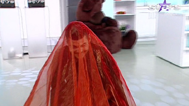 Îmbrăcat lejer, cu haine negre şi mulate pe corp, Bote l-a imitat perfect pe Cezar Ouatu. Numai că eşarfa din mână i-a dat mari bătăt de cap, transformându-se într-o adevărată capcană.