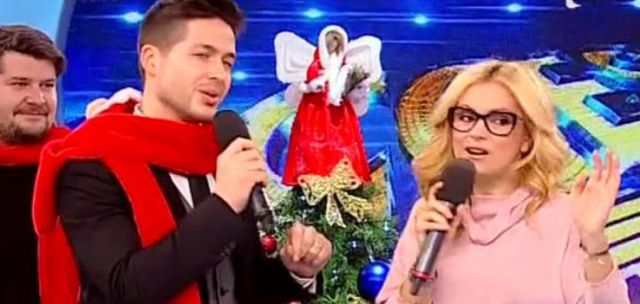 "Am venit să colindăm şi să vă încântăm", i-a răspuns Jorge, colindătorul surpriză. "Vai, ce drăguţ! Vă ascult", a adăugat, plăcut surprinsă, Simona Gherghe.