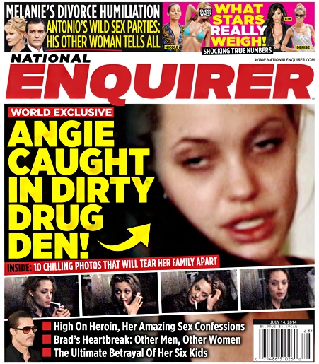 În anul 1990, Angelina Jolie a căzut pradă drogurilor. Vedeta apare în această lună pe coperta revistei National Enquirer, imaginile fiind capturi dintr-un film din urmă cu 23 de ani, atuunci când vedeta consuma heroină. Publicaţia oferă un interviu cu fostul ei dealer, Franklin Meyer. El a declarat că Angelina a fost clienta lui timp de câţiva ani. Bărbatul susţine că actriţa l-a chemat la ea acasă pentru a-i aduce cocaină şi a început să-i dea detalii din viaţa sa intimă.