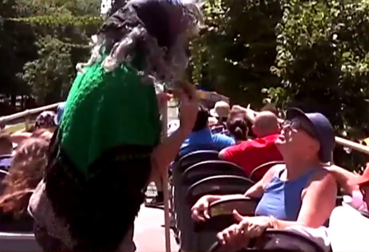 VIDEO / STARoganţă pentru Madame Sclero! A făcut curăţenie în autobuzul decapotabil! Reacţiile călătorilor sunt fabuloase