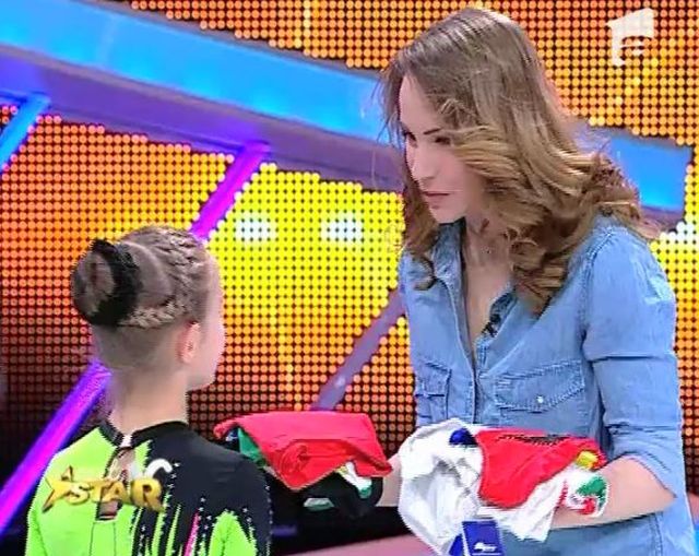 Prezentatorul Dan Negru i-a făcut o surpriză micuţei. Sandra Izbaşa, marea campioană a României la gimnastică, i-a adus micuţei Miruna costume de concurs.