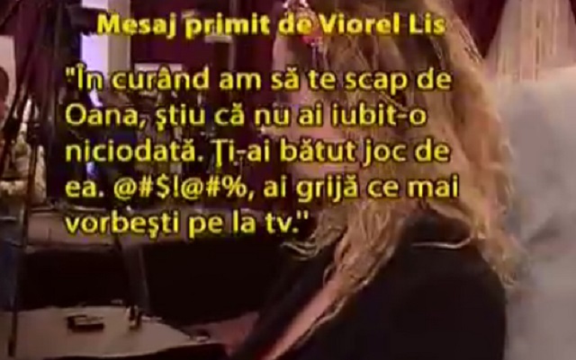 Viorel Lis a fost terorizat de o multitudine de mesaje de ameninţare cu moartea. O persoană necunoscută i-a timis mesaje prin care-i cere s-o lase în pace pe Oana, altfel nu va avea un sfârşit bun.