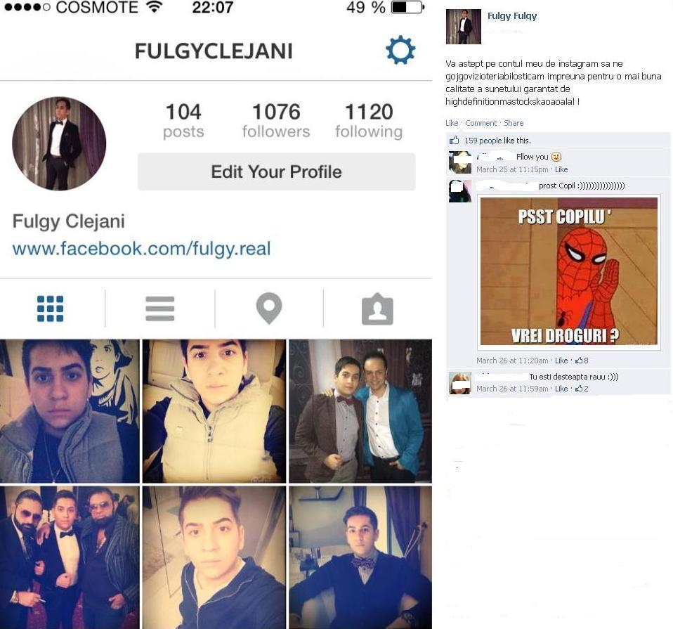 Fulgy a primit un mesaj cât se poate de neadecvat. În timp ce acesta îşi promova un site de socializare, o domnişoară i-a lăsat un comentariu foarte deranjant, mai ales pentru familia artistului. "Psst copilu', vrei droguri?", i-a scris aceasta. Fulgy nici măcar nu s-a deranjat să-i răspundă, acesta luând, cel mai probabil, totul în glumă.