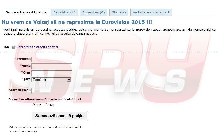 Aseară, trupa Voltaj a câştigat finala naţională Eurovision 2015 cu piesa "De la capăt", fiind cei care, teoretic, vor reprezenta România la Viena. Voltaj a obţinut un total de 24 de puncte. Cu toate acestea, câțiva nemulțumiți au inițiat deja o petiție prin care vor să îi împiedice pe Călin Goia și trupa sa să mai ajungă la Viena ca reprezentanți ai României.