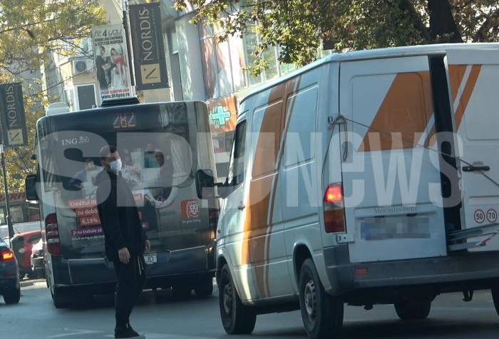 Acesta și-a continuat drumul pe trecere, însă în momentul în care a dat să treacă pe lângă duba care era să-l accidenteze, Adrian Ropotan a făcut un gest la care nimeni nu se aștepta. Fotbalistul a lovit cu pumnul în autoutilitară, extrem de nervos.