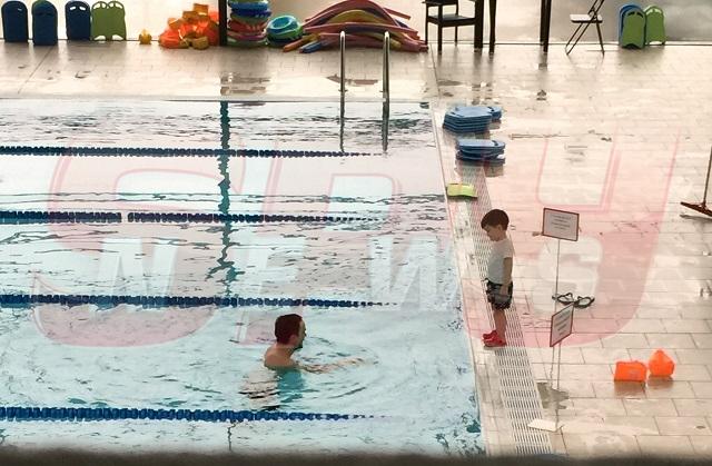 Iar pentru că fiul său încă nu știe să înoate, Șerban i-a pregătit micuțului un colac care să îl facă să plutească și astfel să nu se teamă de apă, dar Teodor nu s-a lăsat prea ușor convins să intre în bazin, preferând să se joace pe margine.
