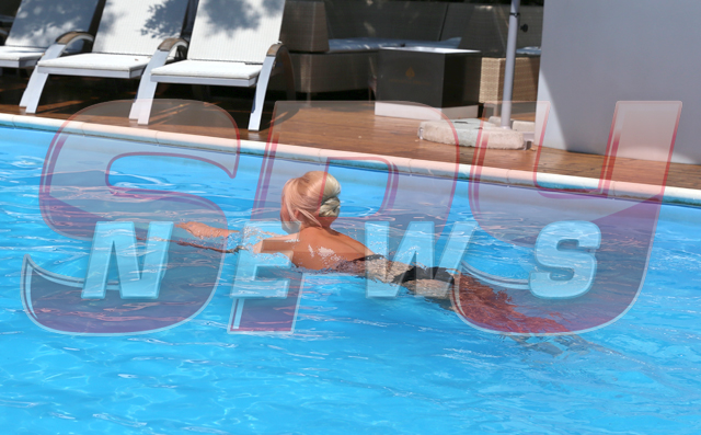 Din fericire, paparazzii Spynews.ro au surprins-o pe cântăreaţă în toată splendoarea ei. Posteriorul bombat şi bustul natural au fost scoase în evidenţă de costumul negru de baie, care îi venea perfect.